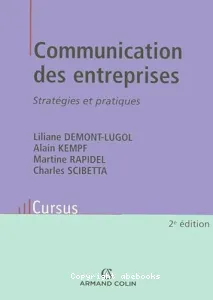 Liliane Demont-Lugol, Auteur ; Alain Kempf, Auteur ; Martine Rapidel, Auteur ; Charles Scibetta, Auteur | Paris : Armand Colin | Collection Cursus | 2012Dans un environnement de plus en plus concurrentiel, la communication est devenue un outil stratégique non seulement pour les entreprises, mais également pour les administrations, collectivités et associations : communication interne pour inform[...]![]()